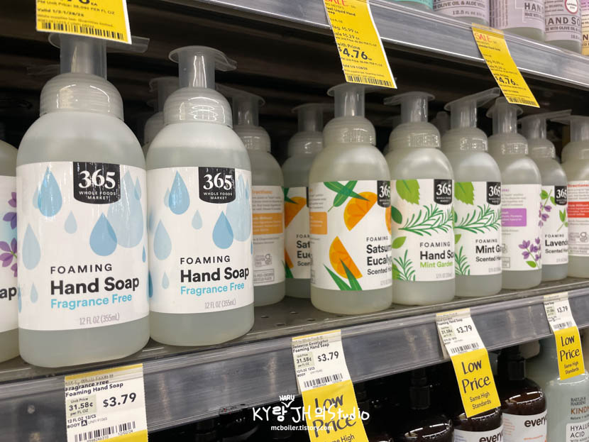 다른 것들도 가지고 돌아갈 수 있을 거 같은 티백과 화장품도 봤습니다만 사고 싶은 건 특별히 없었습니다. 유일하게 Whole Foods 브랜드의 핸드소프의 민트 가덴(향)을 집에서 쓰려고 샀습니다.