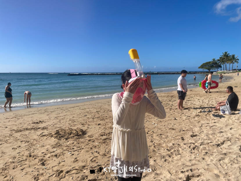 맞다! 일부러 일본에서 가져온 풀 페이스 스노클링도 활용해야지~ (하와이 가서 쓸 거라고 해서 산거)