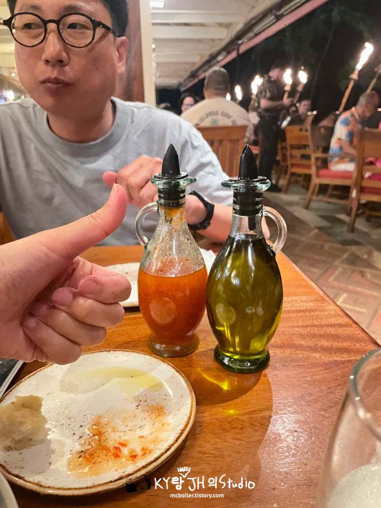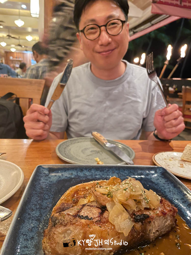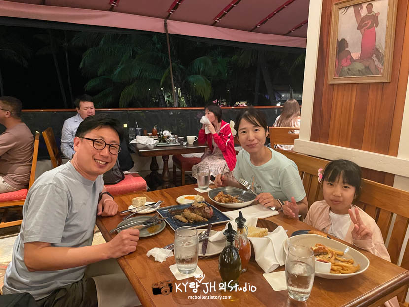 엔저라 뭐든지 물가가 비싸서 식사는 테이크 아웃으로 때웠지만 그래도 비쌌지만 충분히 맛있어서 만족했습니다만 아빠가 "어제는 엄마 생일이었고 기왕 왔으니 레스토랑에 가자"라고 해줘서 아웃리거 와이키키 호텔 안에 있는 레스토랑에 가봤습니다