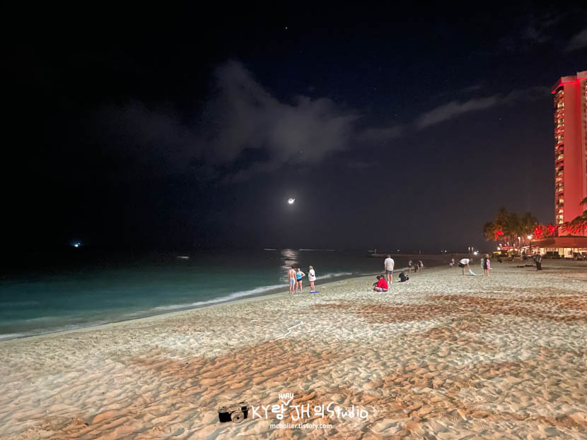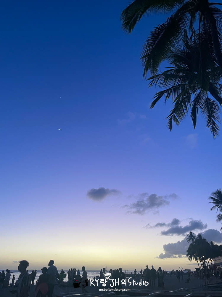 다시 비치로 나왔더니 노을보다 밤하늘이 우위를 점하고 있었습니다. 아름답다...