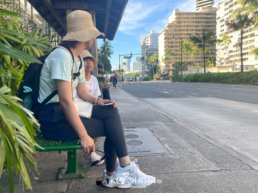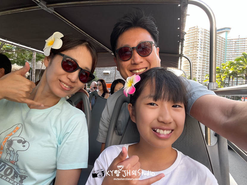 겨~~~~~우 온 핑크라인으로 타고 와이키키 중심부에~ 2층석은 역시 바람이 최고로 기분 좋다~✨