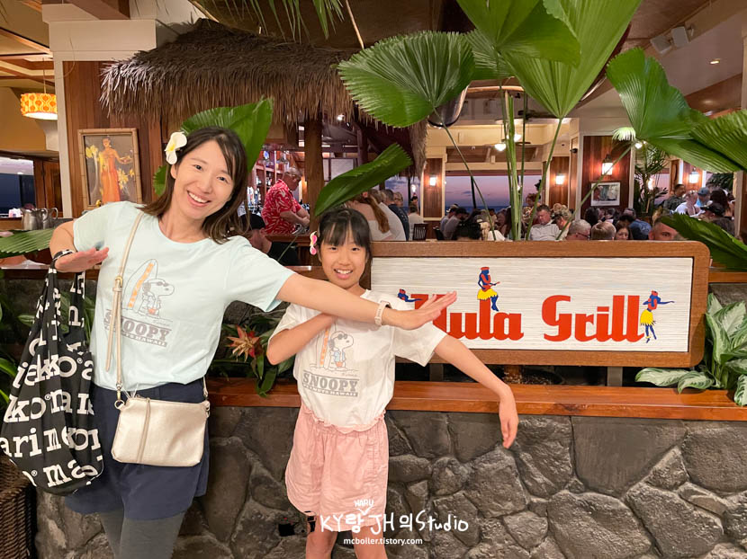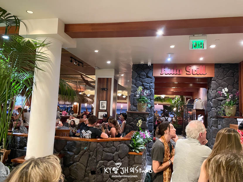 'Hula Grill'에서 자리가 났다는 연락을 받고 돌아왔더니 금방 자리로 안내받았습니다!