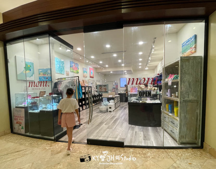 ABC STORE에서 기념품으로 망설이고 있는 딸아이. 하와이는 일본인 대상 기념품이 많은 것도 있어서 '해외 느낌'이 조금 약했을 수도 있겠네요