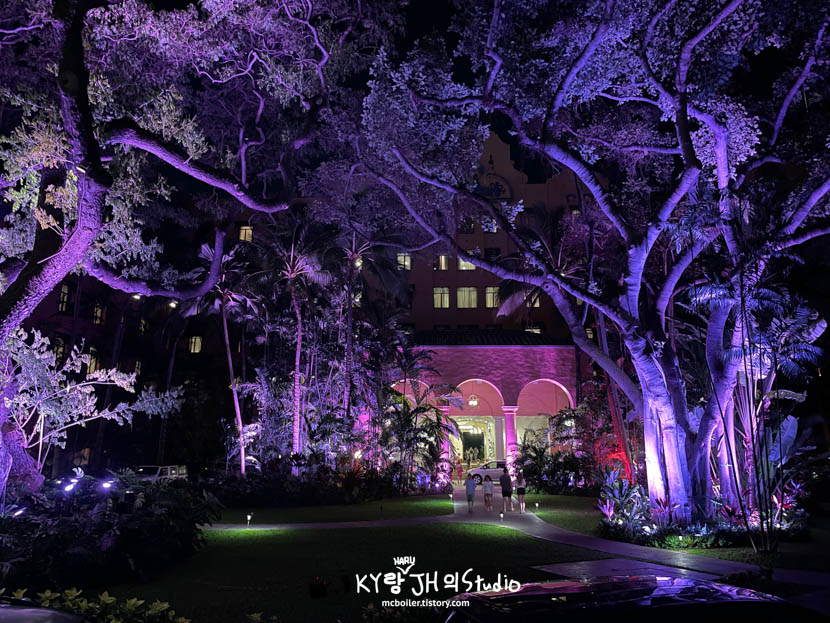 어느 호텔이었는지는 기억이 잘 안 나지만 (아마 Royal Hawaiian?), 정원을 지나가려는데 조명이 켜져 있었는데! 요염한 분위기...